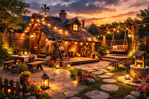 - Warm Ambient Lighting: Soft yellow or amber lights bring the cozy theatrical feeling into your outdoor space.